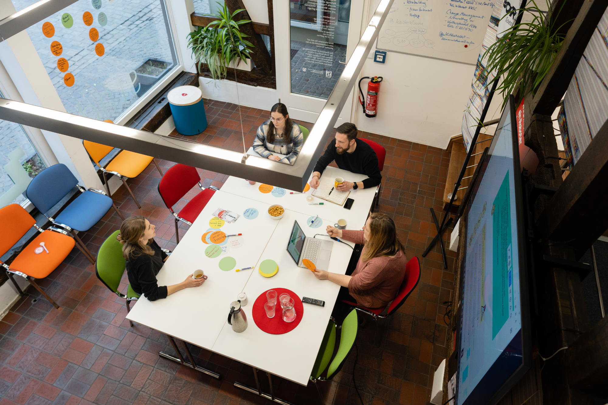 Das Team im StadtLABOR sind Elisabeth Söllner und Helge Ernst zusammen mit Leonie Bitting (Projektbüro Digitale Modellregion) und Stephan Siegert (Smart City Manager). Sie alle sind auch Teil von Soest Digital.